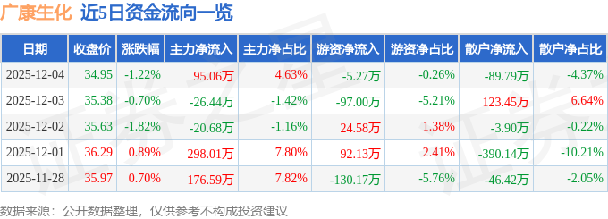 多乐游戏官网:股票行情快报:广康生化(300804)12月4日主力资金净买入9506万元